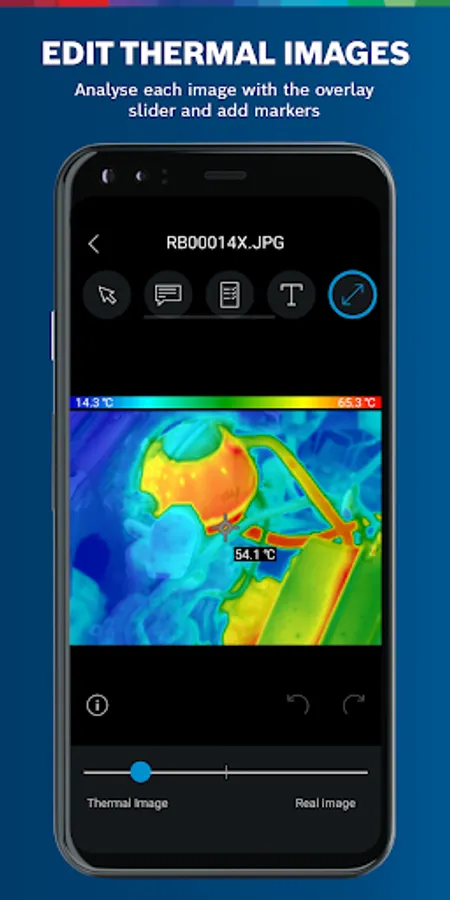 - Overlay the thermal image and real image for easy-to-see localisation of the measurement