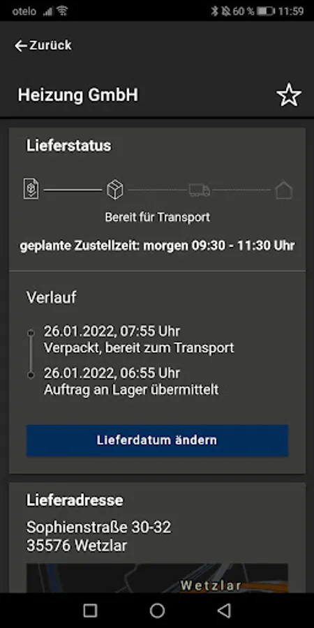 With this app you can track the status of your Buderus deliveries in a convenient and intuitive way and make changes to your deliveries.