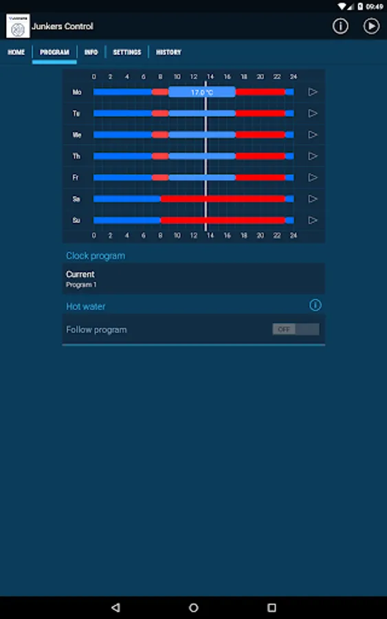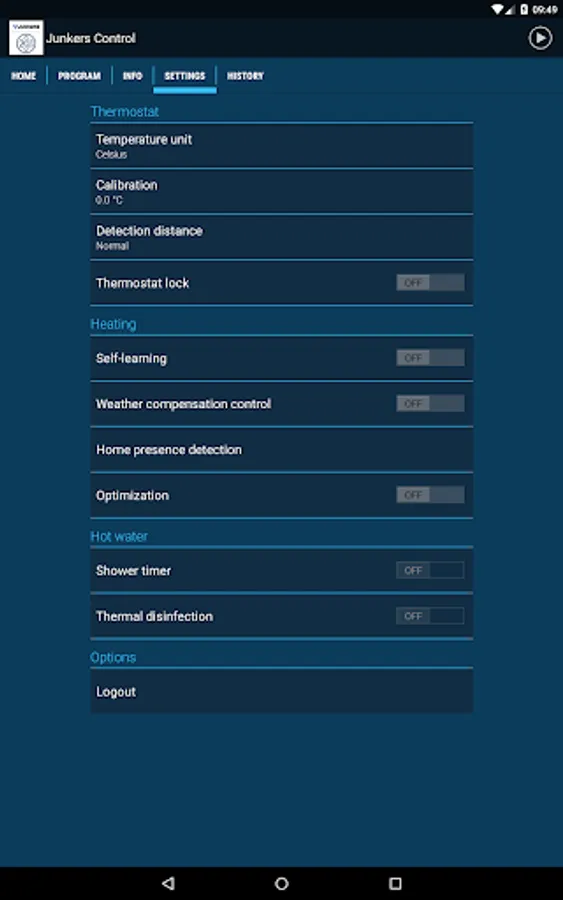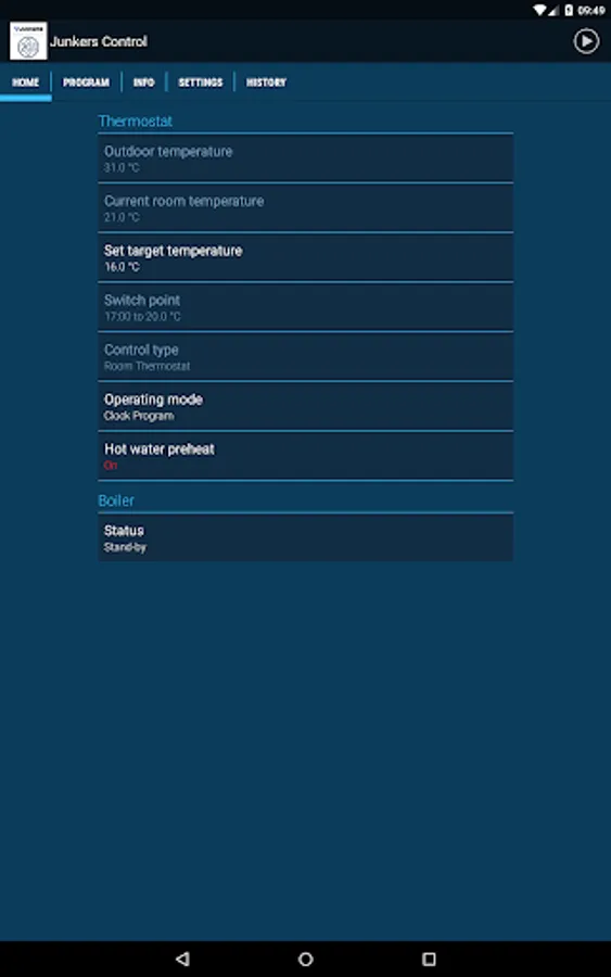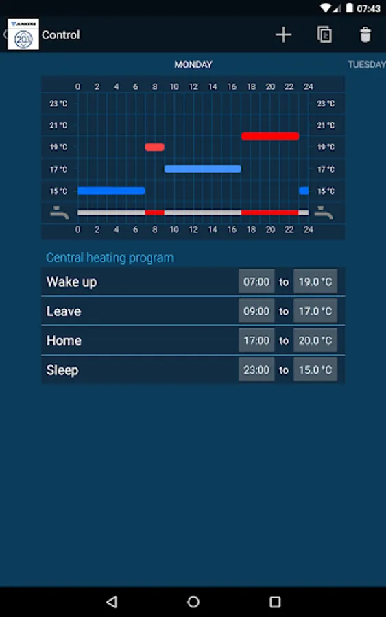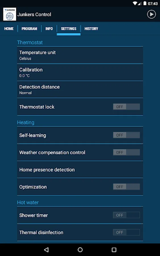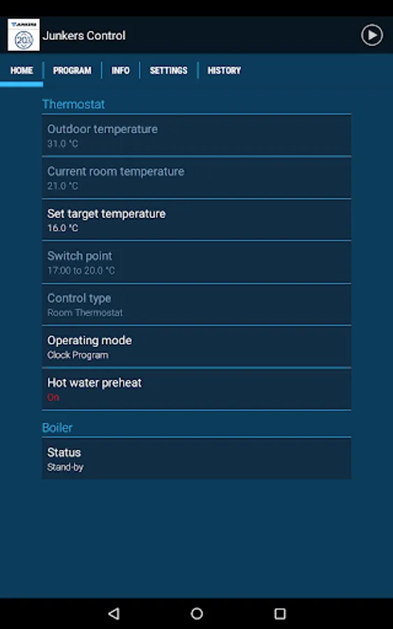The Junkers Control is an internet-connected programmable smart thermostat for heating and hot water system control, which can be operated using this app.