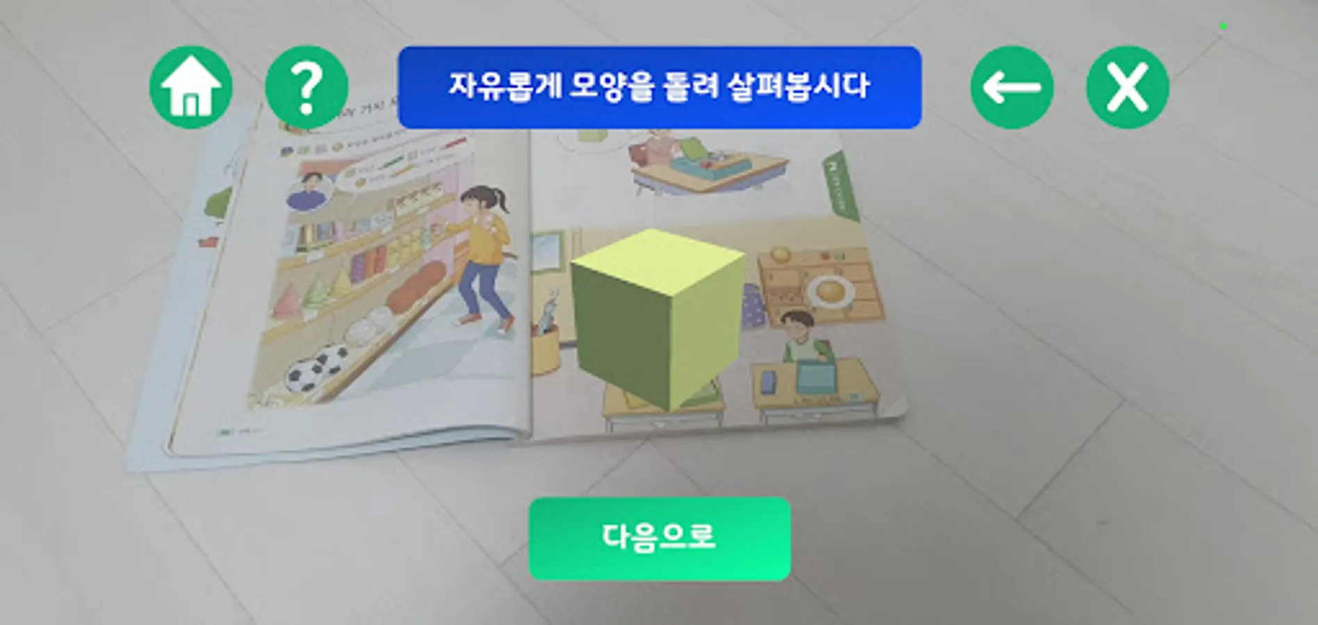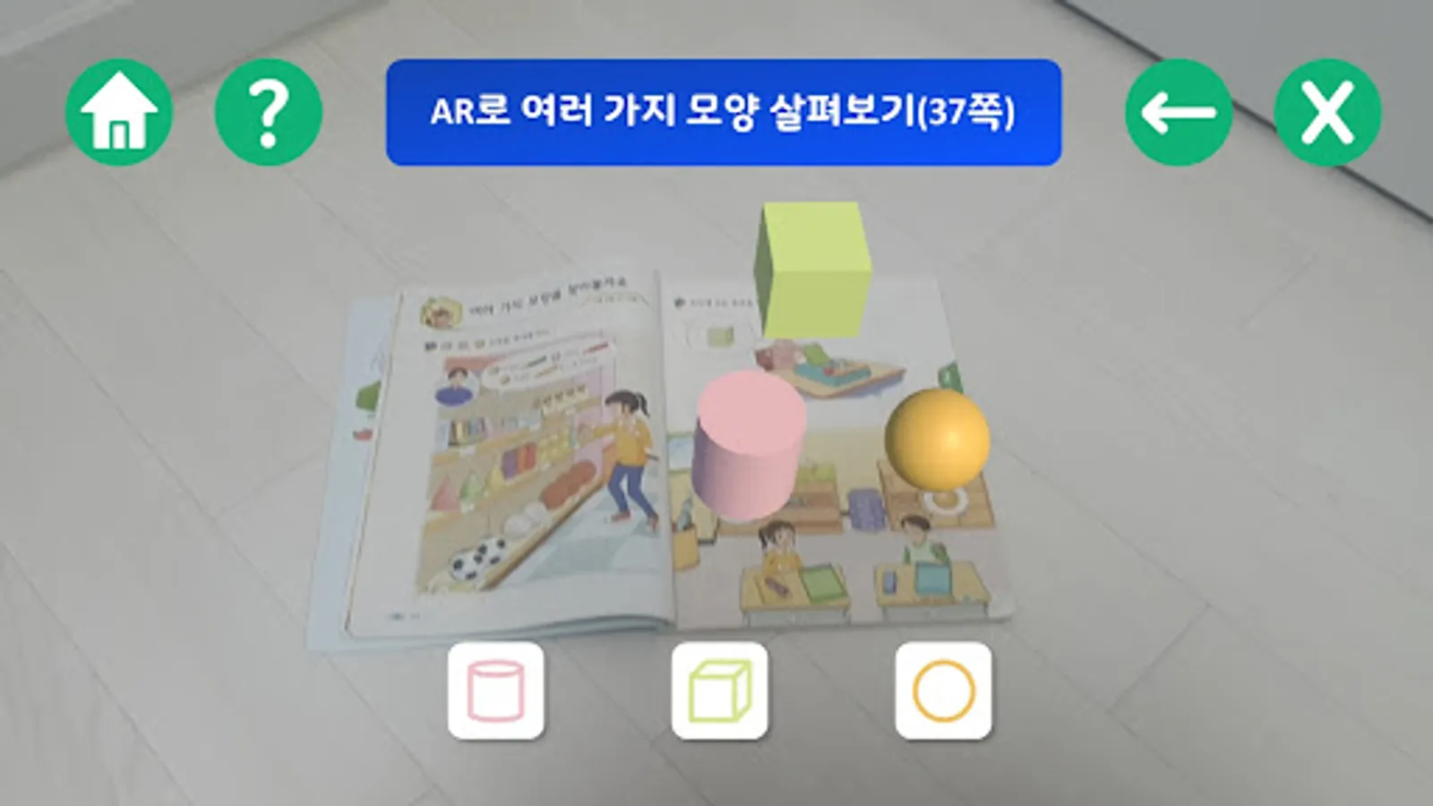 It is an app that learns 'various shapes' in the first semester of elementary school 1st semester math textbook unit 2 with AR (augmented reality).