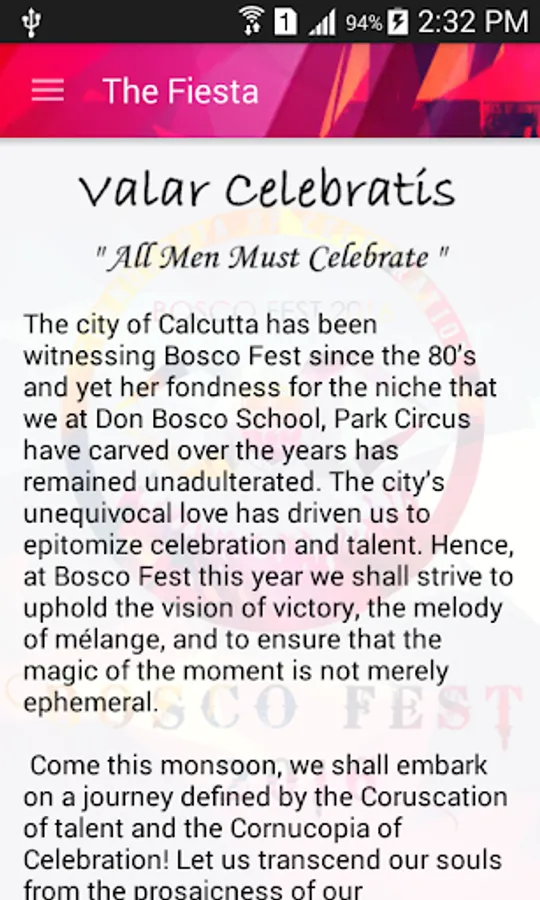 The city of Calcutta has been witnessing Bosco Fest since the 80’sand yet her fondness for the niche that we at Don Bosco School,Park Circus have carved over the years has remained unadulterated! The city’s unequivocal love has driven us to epitomize celebration and talent. Hence, at Bosco Fest this year we shall strive to uphold the vision of victory, the melody of mélange, and to ensure that the magic of the moment is not merely ephemeral!