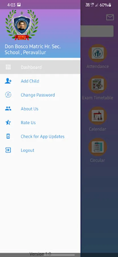 Don Bosco Matric School Peravallur is an application for parents whose children are studying in Don Bosco Matric Peravallur Parents can track their ward's performance, attendance, homework, photo gallery of the school's activities. Parents are notified regularly through SMS and if they fail to read the SMS they can still check the information through the app for the current date or the previous dates.