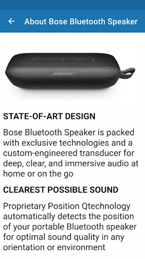 This app is a guide prepared to inform about Bose Bluetooth Speaker.