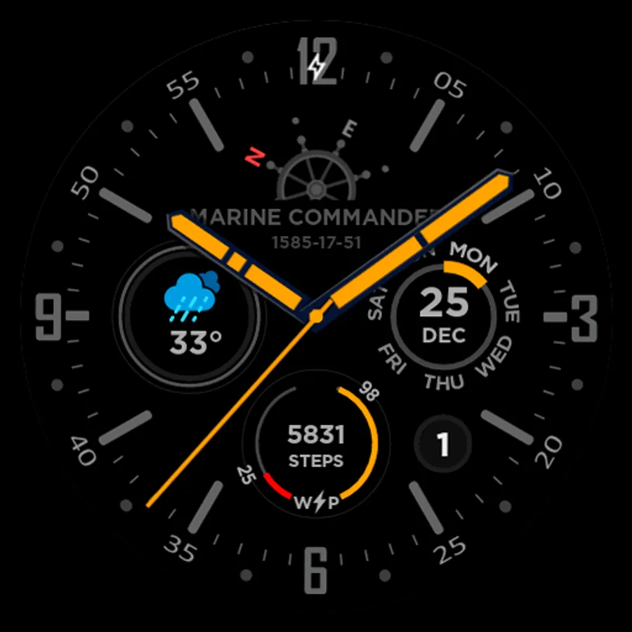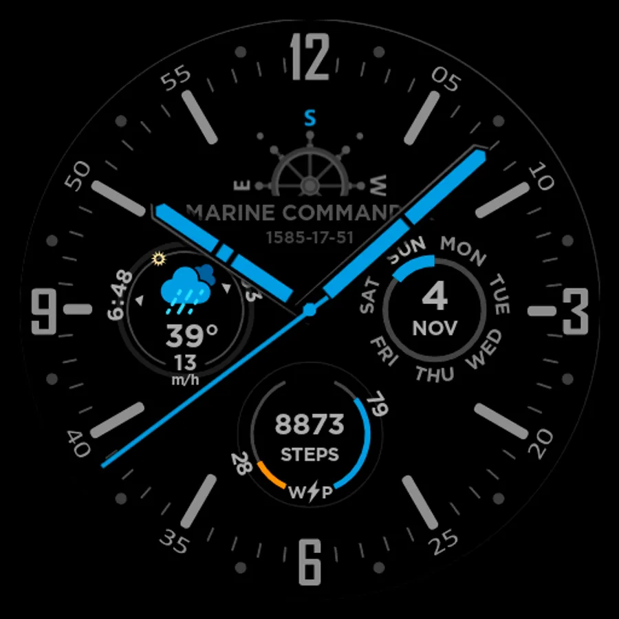 If your smartwatch does not have a magnetic field sensor, the compass will work in emulation mode, due to the gyroscope and accelerometer and the compass will not show the sides correctly.