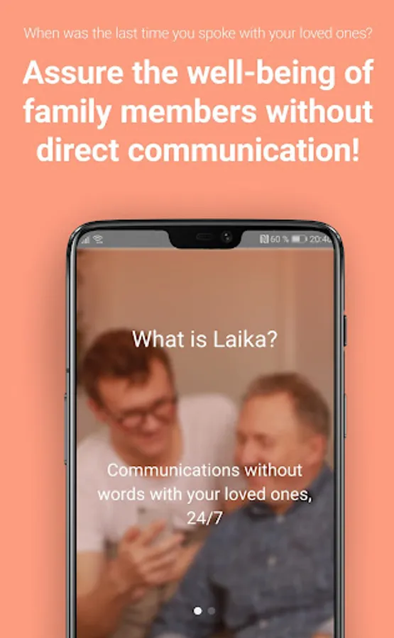 The Laika app will provide a worry free mindset for those concerned with the state of their loved ones. By quickly checking the Laika status, members are given reassurance immediately and especially at times when a text or call cannot be completed by either party.