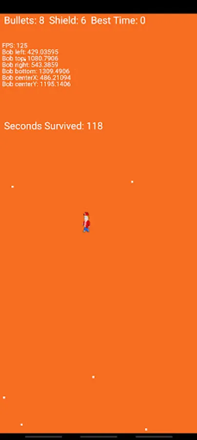 This is game is about bob which teleports anywhere on the screen to avoid the ever-growing number of bullets each time bob teleports another bullet is spawned in.