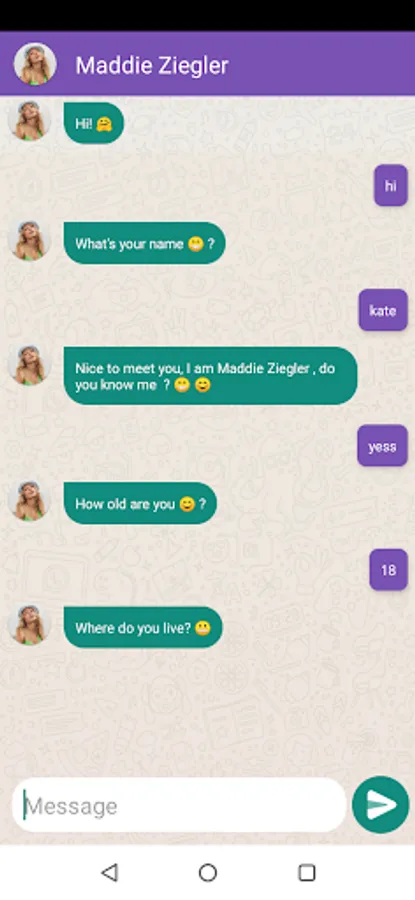 Disclaimer: This App is purely fictional and not an official just made by For Fun It's just entertainment for ! In other words, this is not Maddie Ziegler who calls, but a simulation of fake calls and fiction.