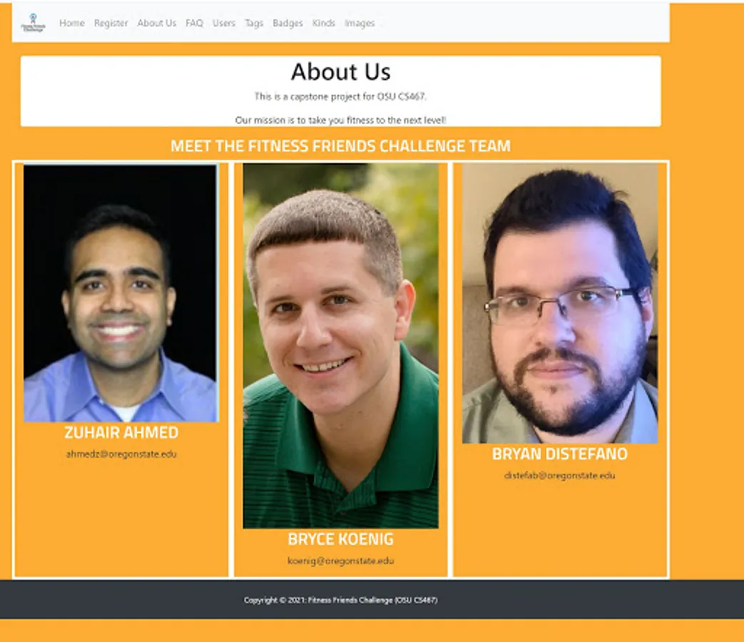 We created a crowd-sources fitness challenge cross-platform web application. Users have their own accounts and then are able to create and participate in other user created challenges. We envision our application being easy to use with strong UI/UX, such that any new customer can create a crowdsourced fitness challenge and get going in 60 seconds or less. Each team member has limited experience creating web applications and so this is an opportunity for us to develop our skills in a team environment and showcase our talents to future employers.