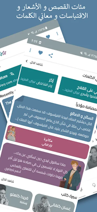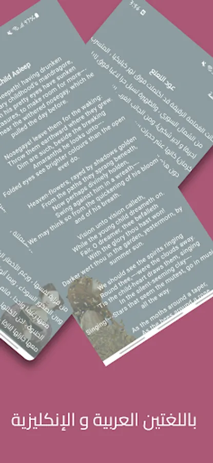 The application provides hundreds of stories, poems, quotes and meanings of words in both Arabic and English.