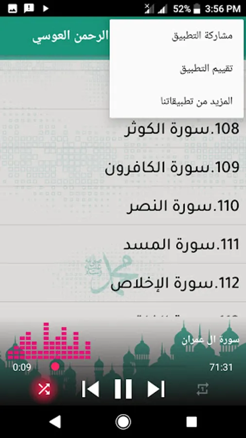 In the end, if you liked the application to download the Holy Quran with the voice of Abdul Rahman Al-Awsi, do not hesitate to evaluate the program and our other programs that you liked and share your opinion with us because your opinion is always our goal.