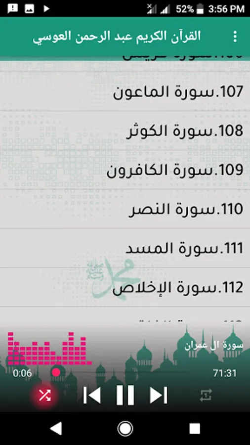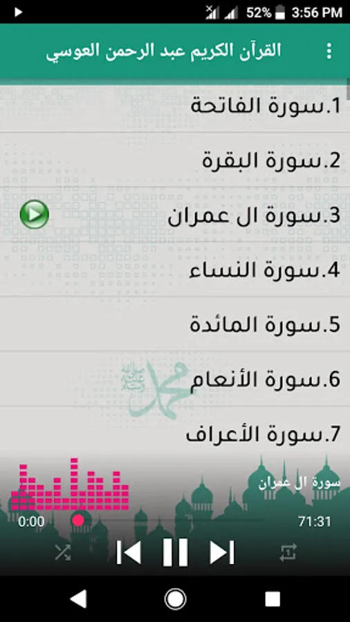 Applying the Noble Qur’an with the voice of Abd al-Rahman al-Awsi enables you to listen to all the surahs of the Holy Qur’an after specifying the name of the surah that you want to listen to, which Sheikh Abdul Rahman Al-Awsi recites in each surah.