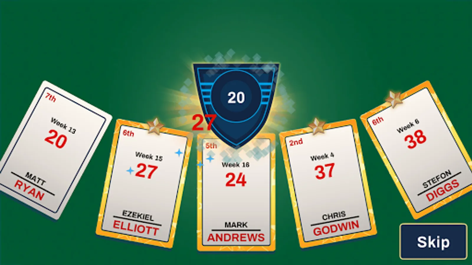 Five Card Lineup gives you fast-paced fantasy football action! It plays and pays like Jacks or Better poker but uses real football players and their game stats on the cards!