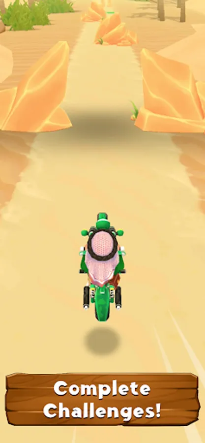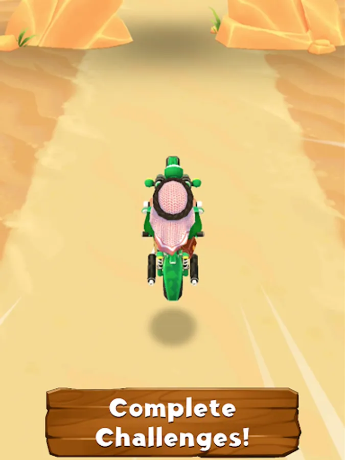 · Drive fast on the motorcycle to win challenges and post the shortest time!