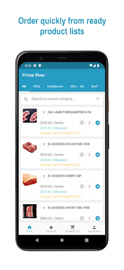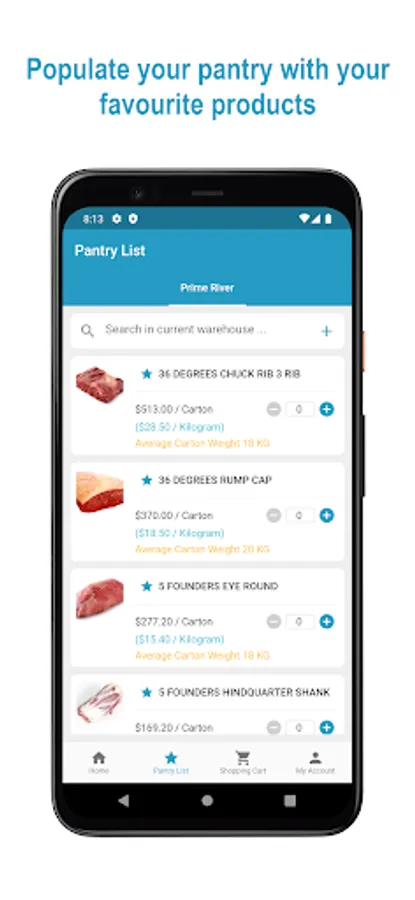 The Prime River App allows you to browse through currently available products. You can also view the latest specials and create a list of favourites or just search for products by name, it also offers the following features: