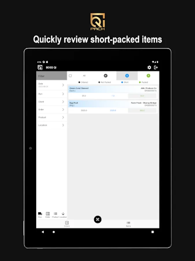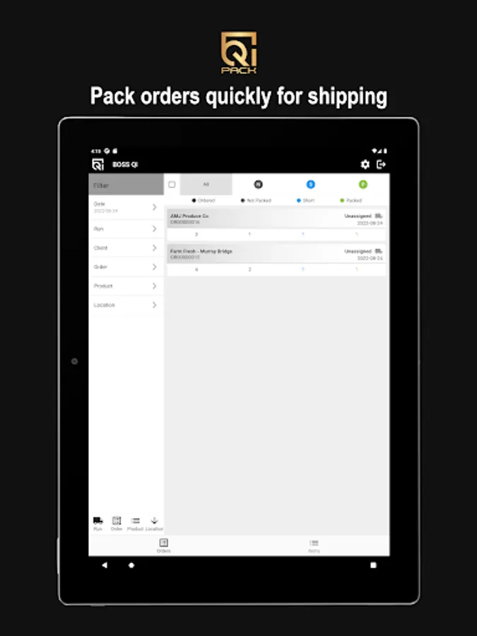 Boss Qi Pack provides a lightweight, easy-to-use interface for warehouse picking and packing.