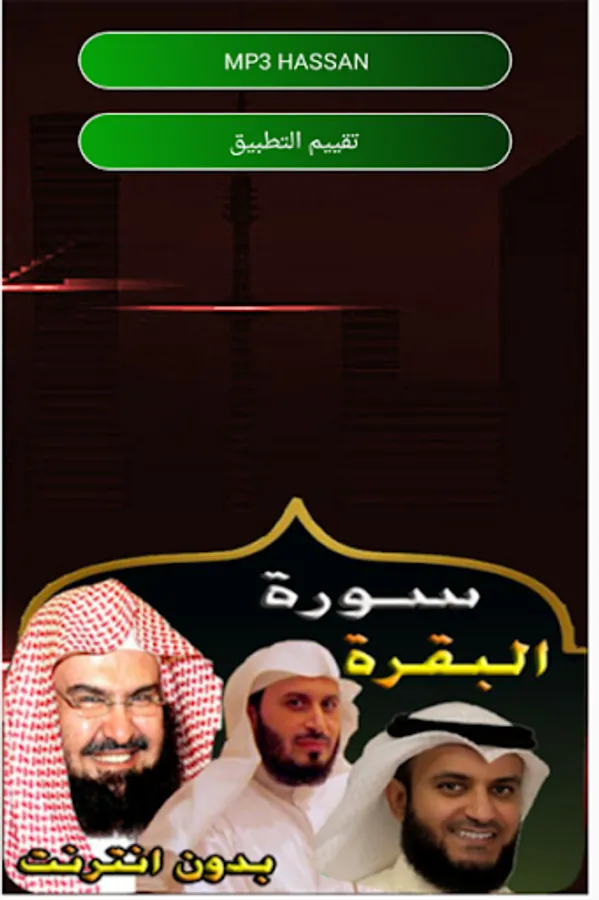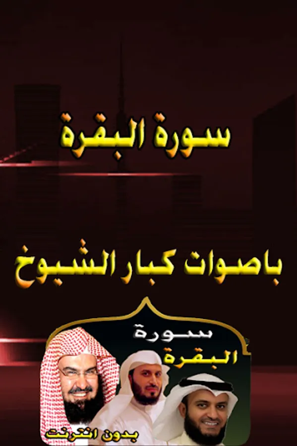 A great Quranic surah program, which is Al-Baqara, is heard with the voice of Al-Afasy and the eminence of Sheikh Saad Al-Ghamdi, and likewise, the owner of the distinguished voice, Fares Abbad, in addition to the great Sheikh Abdul Rahman Al-Sudais Zahda. The program works without the Internet.