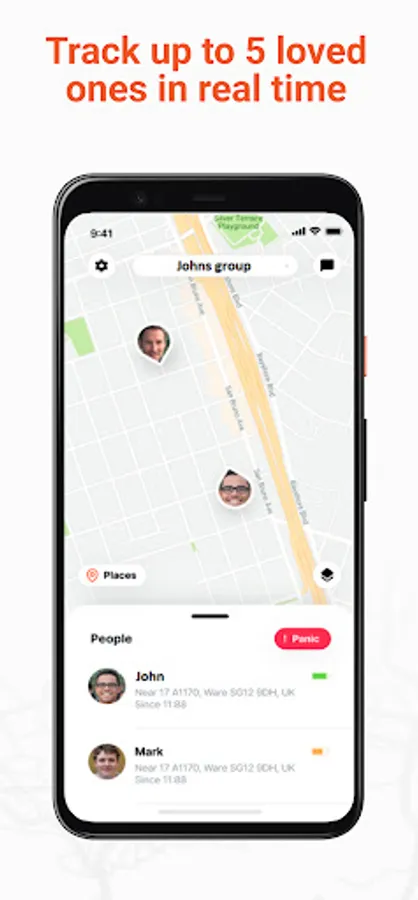 - Panic alerts allow your loved ones to instantly send their location to a designated group of people, so they can get help when they need it