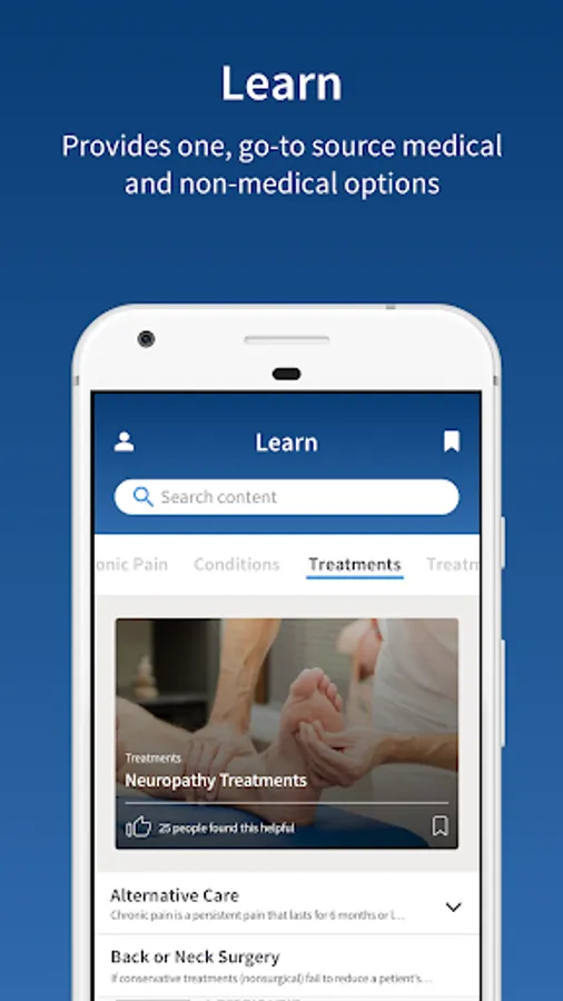 • Trusted Content – get FREE access to a searchable library of articles, videos, and meditations to help find pain relief,