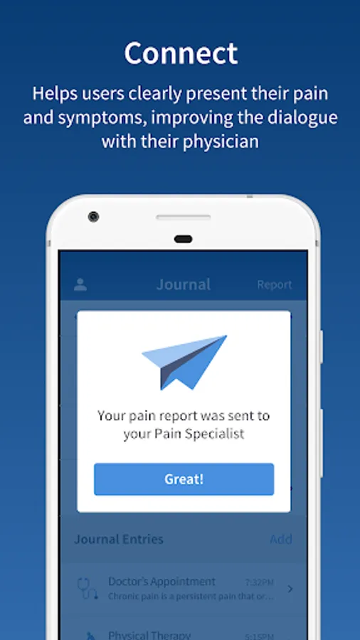 • Pain Reports – get and send summary and detailed reports for better patient-physician communication, you can take all the information you need from the Pain Diary.