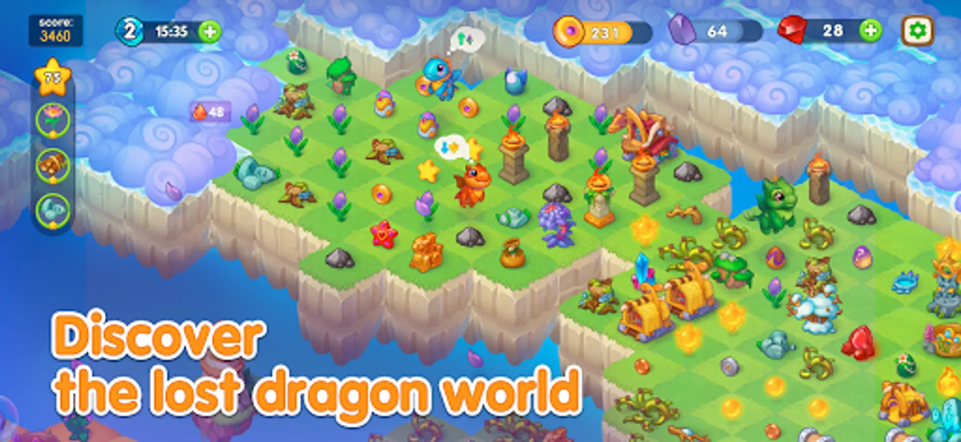 Try a magical adventure full of dragons in Dragon Magic! Combine different items and merge unique creatures to collect them. Discover the land of mysteries!