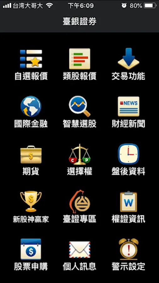 《臺銀證券》為三竹資訊所開發之股市看盤軟體,提供上市、櫃股票(STOCK)、指數、期貨、選擇權、外匯及國際金融報價,另外還有豐富的盤後資訊、財經、金融新聞;並依券商需求增加各類下單交易及免費看盤功能。