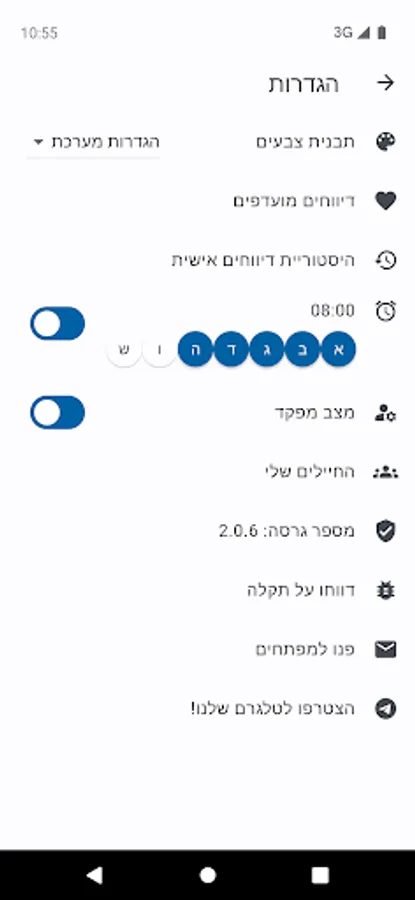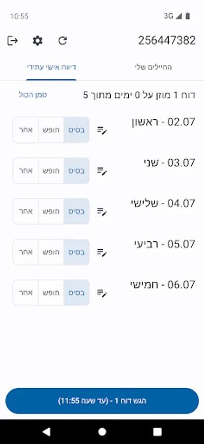 תומך בחיילם במילוי בלחיצה על כל השבוע בעזרת דיווח עתידי