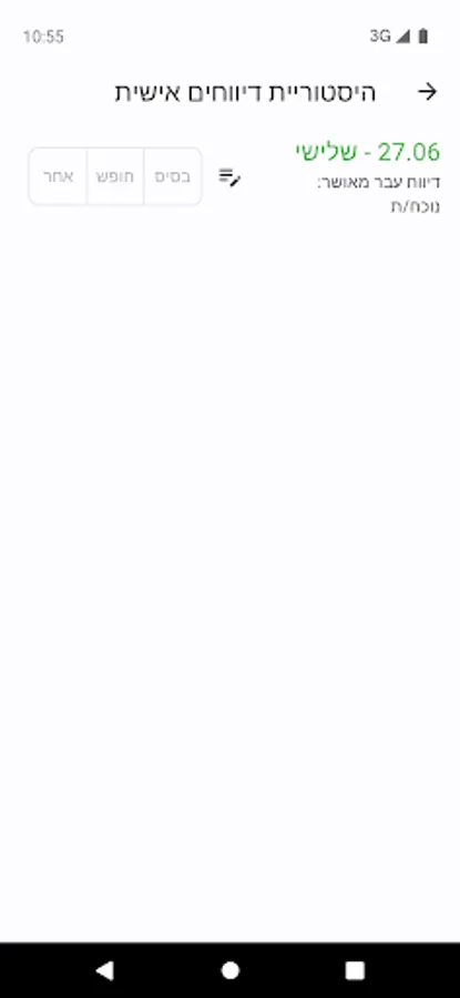 שימו לב, לא מדובר במילוי *אוטומטי* של דו"ח 1. אין מילוי אוטומטי וצריך למלא בכל יום ממש כמו באפליקציה הרגילה.