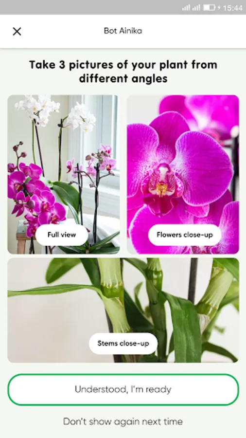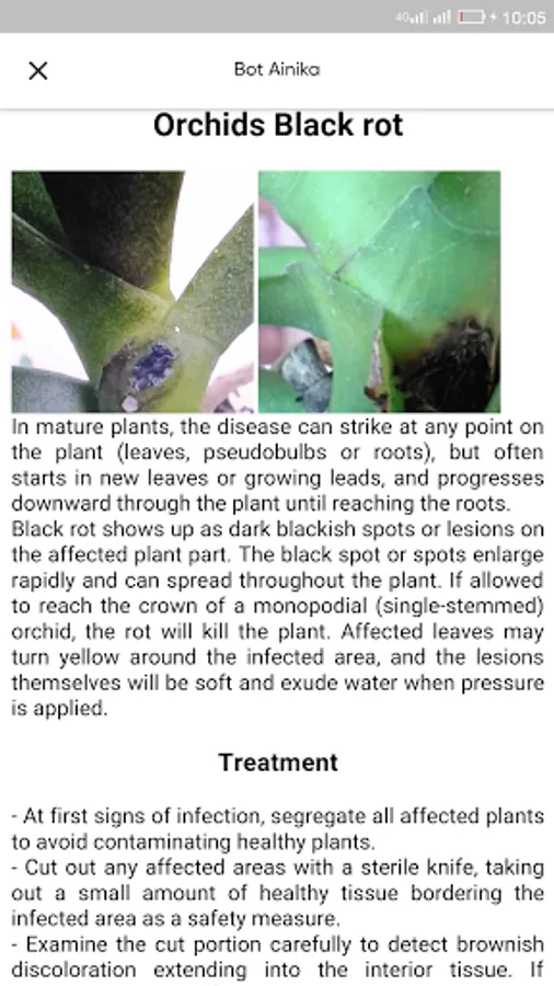 Bot Ainika - Intelligent AI-based assistant identifies orchid disease from photos. You only need to take a photo of your orchid and we will determine if the plant is sick and offer treatment options.