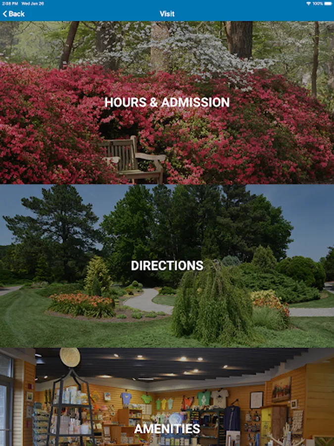 The NBG mobile app is designed to enhance your experience of our beautiful and historic 175 acres. Track your location via GPS on the map and read about specific gardens along the paths. Locate restrooms, water fountains, historic landmarks, our café and more. Check out what’s in bloom or search the online plant database. All you need to know about directions, hours, admission and other frequently-asked questions can be found quickly. View special events, educational opportunities and a current course catalog. Dig Deeper for information on membership and more