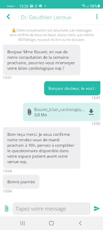 MAX is a health application certified as a Class I Medical Device. MAX is fully hosted in health data and all our servers are located in Metropolitan France. The end-to-end encryption of our instant messaging guarantees the confidentiality of your discussions.