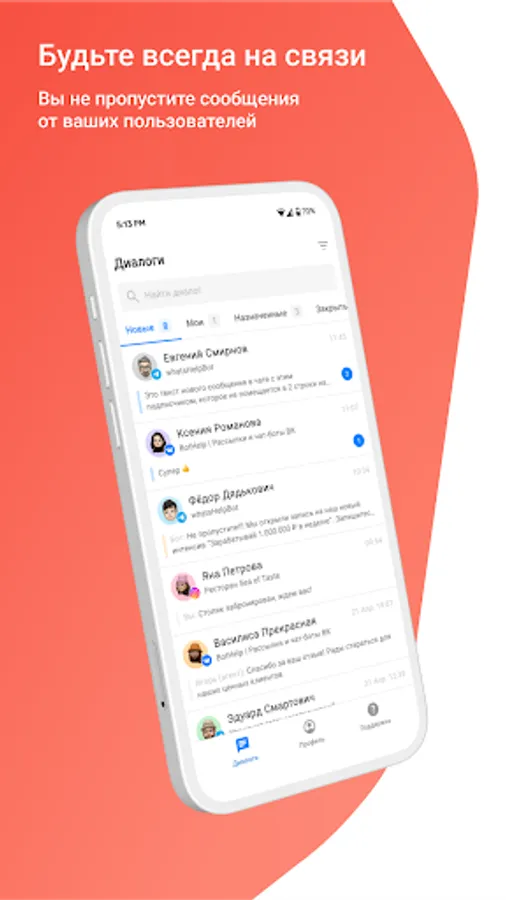 Create useful chatbots and variable sales scenarios in messengers with the help of a visual chatbot builder. Without programming and technical skills.