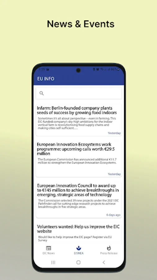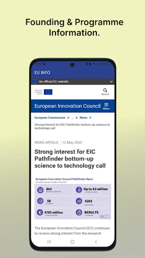 "EU INFO is built for startups, SMEs, Policy makers to have one place to access all the information and announcement from EU innovation agencies.
