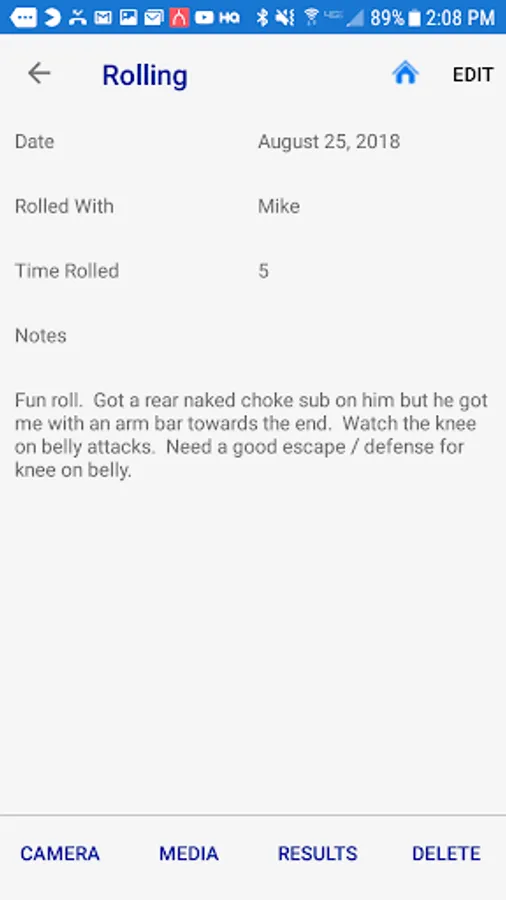 My Bjj Notes is an app designed to help you document your jiu jitsu journey. It is said that writing something down greatly enhances your ability to retain that information. My Bjj Notes allows you to write down everything about your jiu jitsu training and keep that information organized and readily available to review or add more information. With the ability to edit entries, you can make some quick notes right after class and then improve the notes as you have time or discover something to add through practicing. You can also add pictures and video to help document your journey and training.