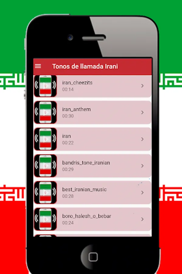 Enjoy the new Iran music ringtones application to set as a ringtone, notification tone, alarm tone. The most traditional and cultural new original ringtones of Iran Tehran melodies with Western Asia lyrics. to vary the sound of your Android mobile phone, with a mixture of rhythms popular ceremonial and folk songs from Iran rhythms such as: Classical music, Folk music, music Symphonic music, Pop music, Rock, Hip hop, Jazz and blues and bhajan Hinduism folks ...contemporary and ancient, feel free to download.