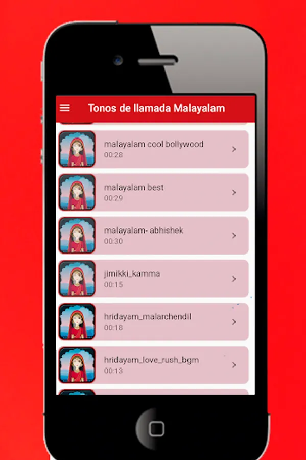Enjoy the new Malayalam music ringtones application to set as ringtone, notification tone, alarm tone. The most traditional and cultural new original ringtones of Malayali melodies with Indian lyrics. to vary the sound of your Android mobile phone, with a mixture of rhythms popular ceremonial and folk songs of kerala rhythms such as: Classical music, Folk music, music Symphonic music, Pop music, Rock, Hip hop, Jazz and blues and bhajan Hinduism folks ...contemporary and ancient, feel free to download.