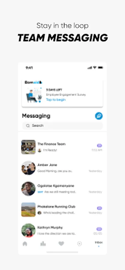 Constant Messaging: Create and join messaging groups with co-workers, to keep each other updated and accountable on wellness team activities.