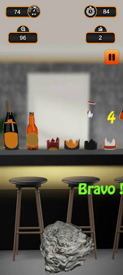 Bottle Shooting Master is Breaking as Many Bottles as you can in given time and please check the shield, Bombs Also.Keep breaking the bottles without missing a shot to make a combo and score even more points.Try to shoot as many bottles as you can Do not worrying about number of available stones. Enjoy bonus level.Bottle Shooting Master Game is fully loaded with lots of fun and entertainment. It is all about shooting the bottles within a given time.Bottle Shooting Master is an interesting game for all the age groups and all the mood types.