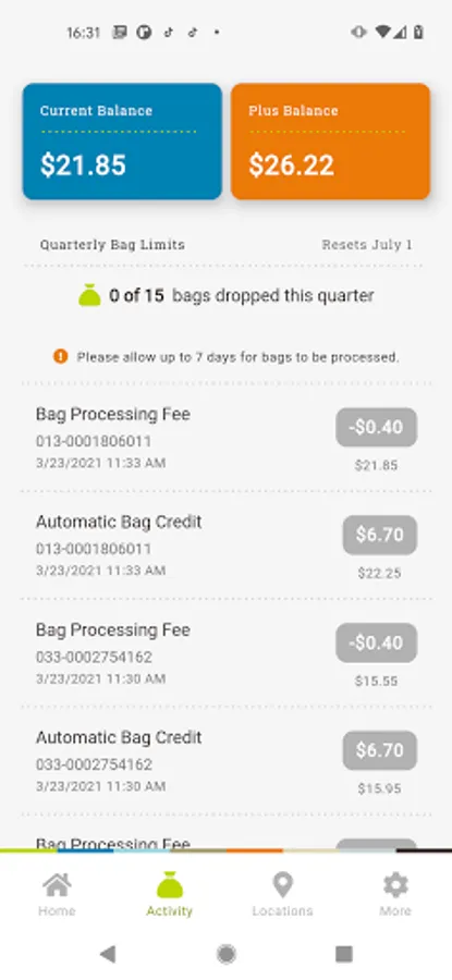 BottleDrop is the easiest way to return Oregon deposit containers and get your refund. With the app, you can access your account card, view your account balance and bag history, update your information, receive account notifications, and find locations.