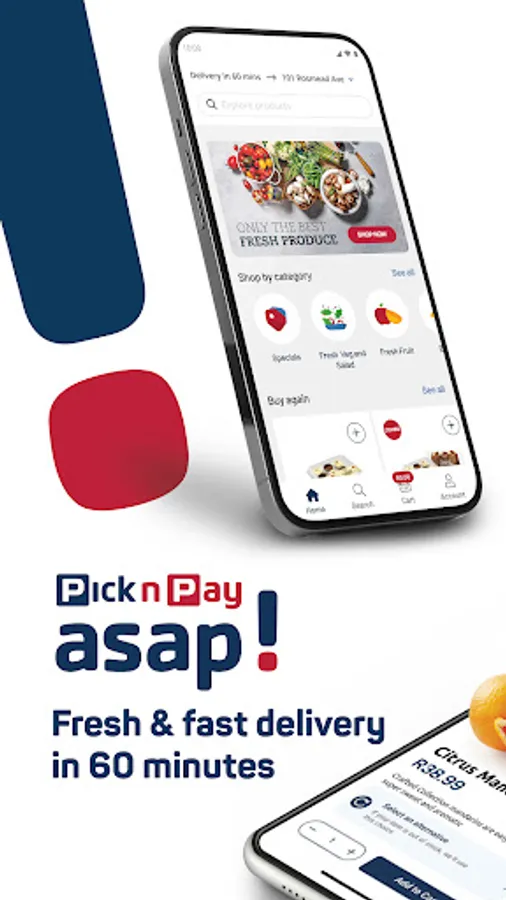 Our freshest groceries, delivered fast, easy. Just tap tap asap! Pick n Pay's official shopping app for grocery delivery & more. With over 20 000 products available, fast, fresh groceries are just a tap away! With Pick n Pay asap!, you can enjoy amazing specials, exclusive deals, in-store pricing on thousands of products, Smart Shopper rewards, and fast delivery right to your doorstep. Whether you’ve run out of milk, decided to eat at home instead of going out or simply want to do your weekly shopping from the comfort of the couch, we make it easy to get what you need, with super-fast delivery in just 60 minutes, smart Ai search and precision tracking. We deliver to towns and cities across South Africa, with orders sent from your nearest store.
