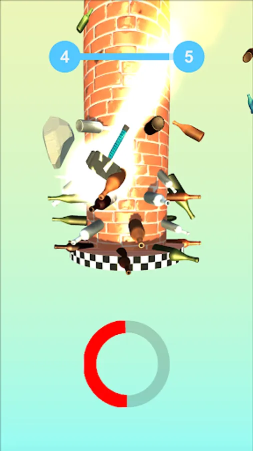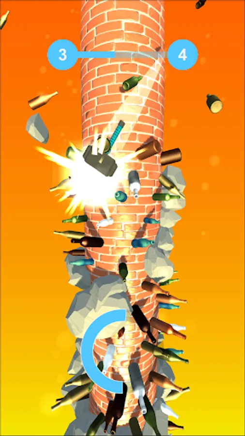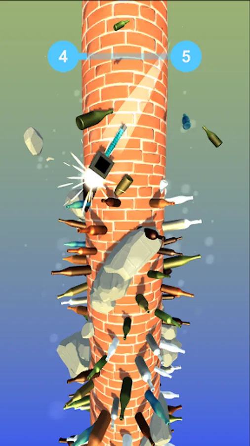 The falling hammer needs to hit exactly the bottles only and nothing else. If you hit the Rocks, You’re Out!! Control the fall of the hammer in this bottle smashing game. Destroy the bottle stacks in this helix stack app.