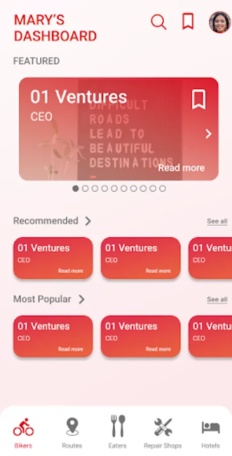 Bikers app goal is to onboard new bikers, feel inclusive in road with information such as