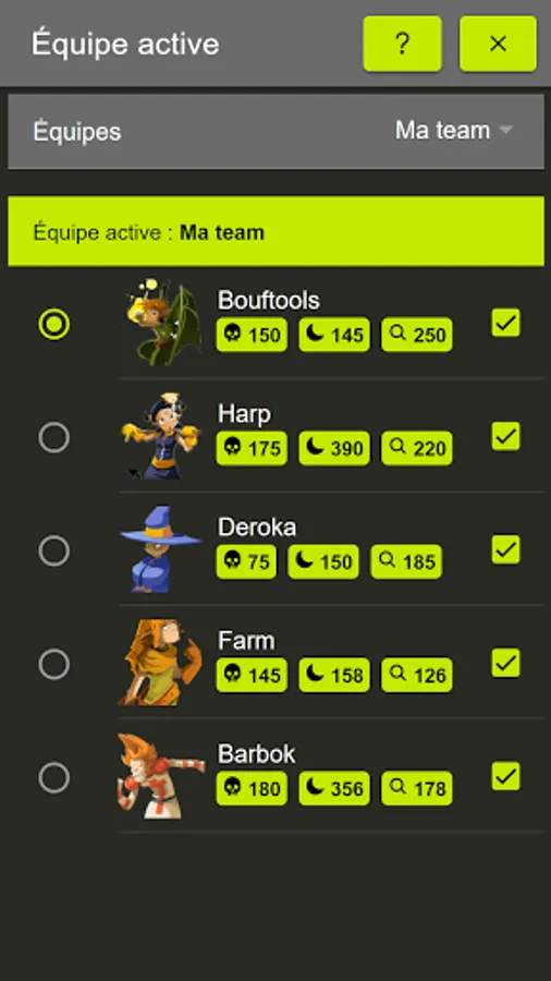 Plan your next xp and drop sessions on Dofus Retro via the Bouftools application. Create your characters, manage your teams and visualize the experience gain according to the bestiary of Dofus!