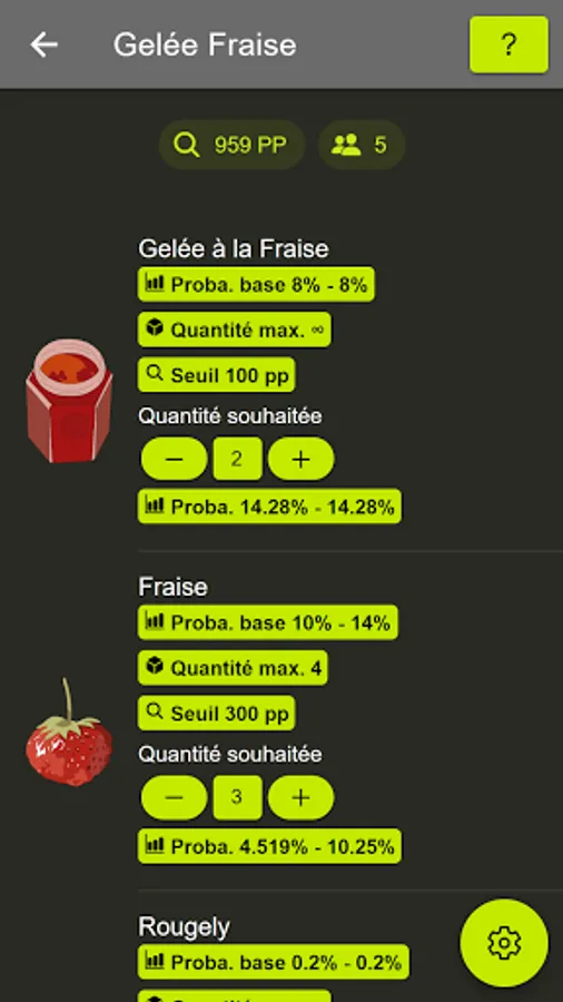Do you want to know the probability of your group of collecting a certain number of resources during a fight? Encode your team and consult the bestiary, zones and dungeons in order to know the profitability as much in terms of xp as of resources collected!