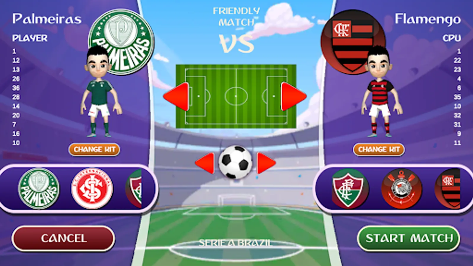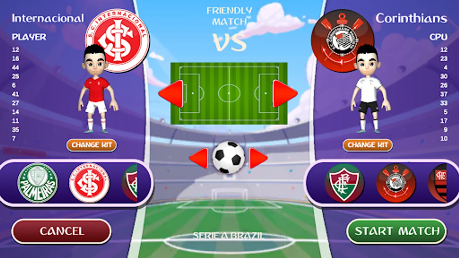 You can choose any of the twenty teams participating in the Campeonato Paulista or the Brazilian Football Championship, in addition to changing the fields and balls to increase the fun during the game.