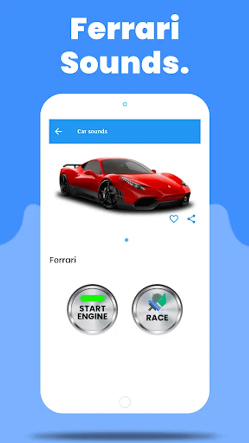 The app features accurate engine sound effects, including startup, revs, and acceleration sounds, making you feel like you're actually driving the car. Also the app provides an interactive experience with a gas pedal to give you a realistic feeling of speeding up to the maximum.