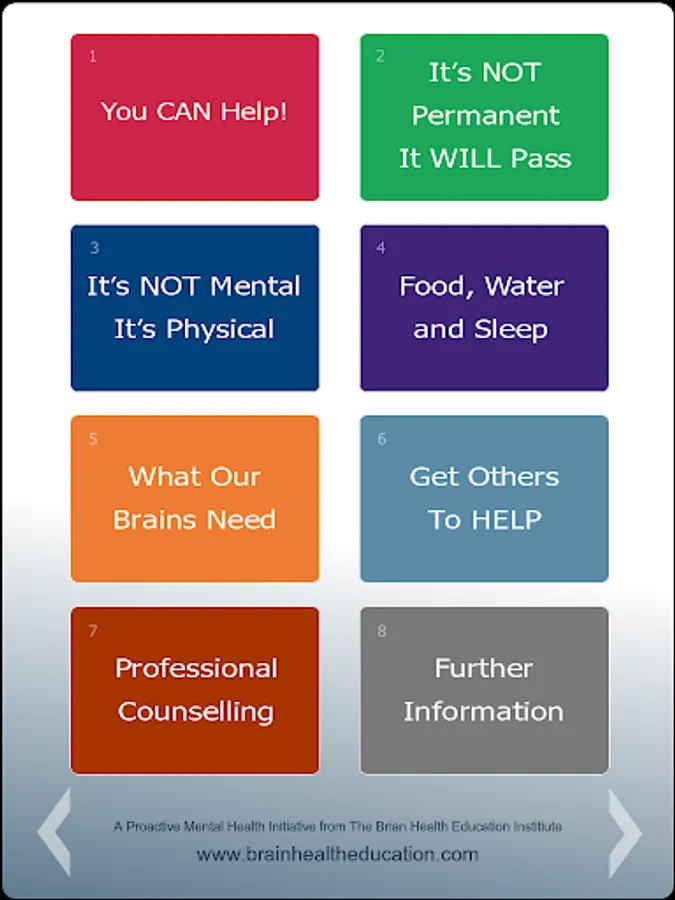 This free app empowers families to better understand how the brain functions and to establish improved Food, Water and Sleep habits. Practical, everyday ways for family, friends or colleagues to offer assistance and support when abnormal thinking and out of character behaviour is first noticed.
