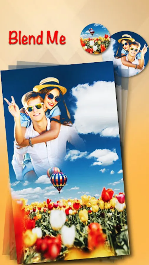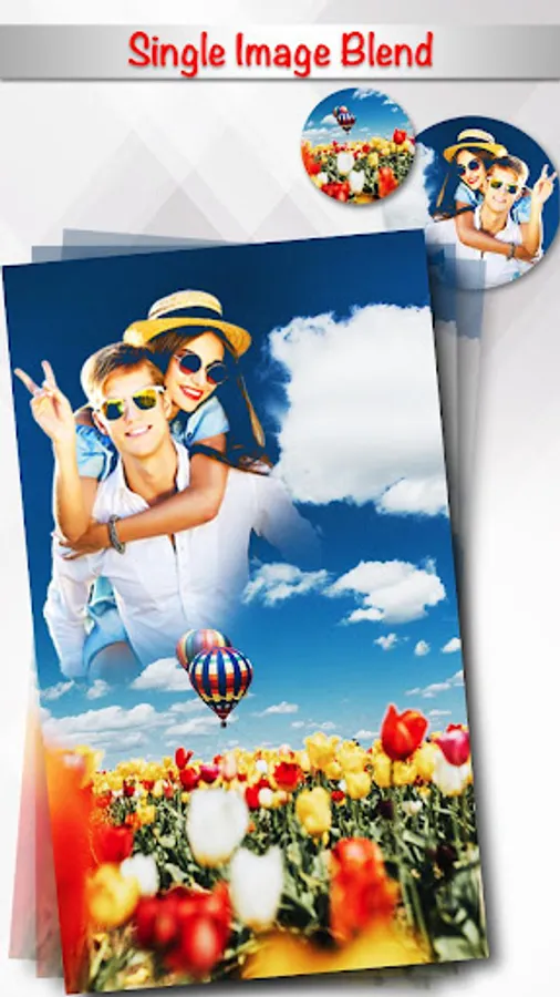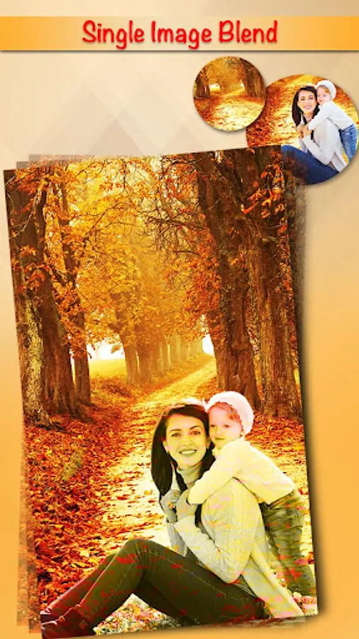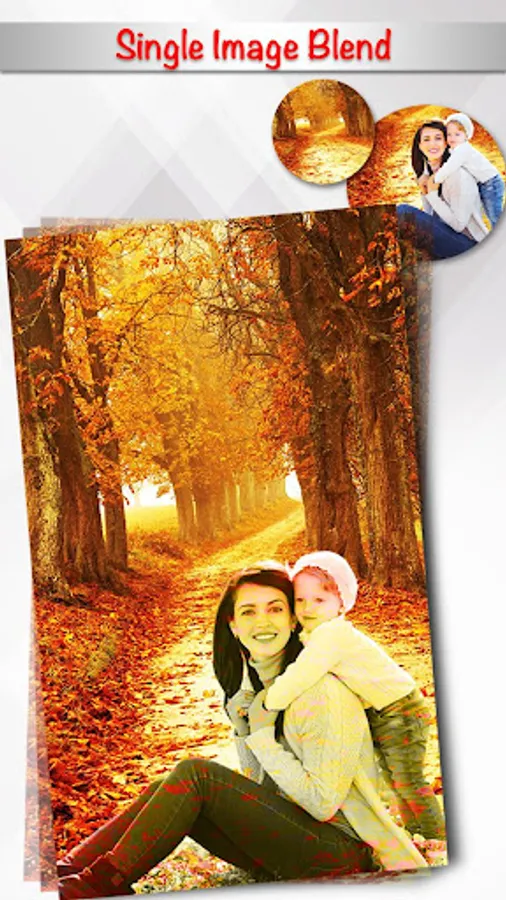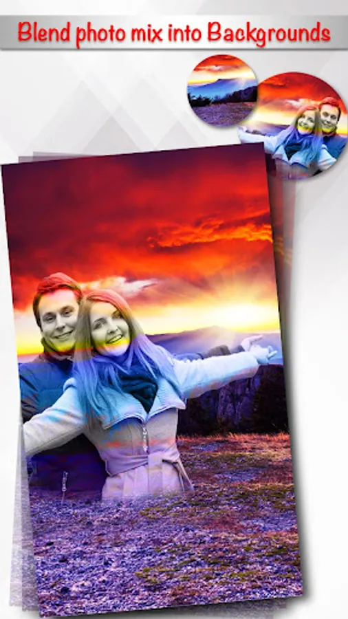*This Photo Blender Mix photos which allows images from the gallery to set into backgrounds.