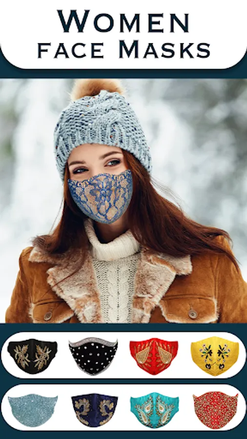 This ladies face masks app which has a look of those pretty masks that covers half face mask photo editor of your adorable face with its pretty fancy and lovely model designs. Created from soft material and some fancy items, this women's face mask is made with embroidery and reaches to meet the preference of every ladies face mask makeup and the cute face mask app for girls.