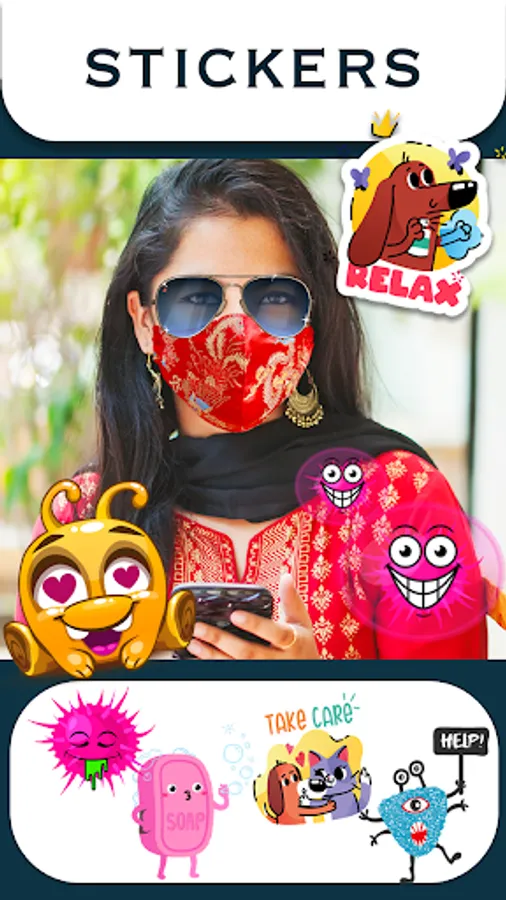 Add wonderful stickers to the face masks that you put on your face with a lot of funny, glasses, text and vector categories available in this cute face mask photo editor application.