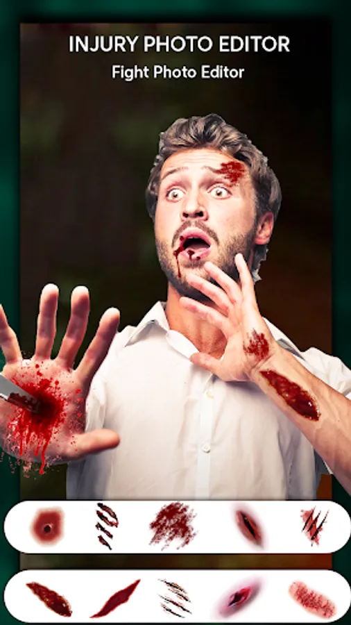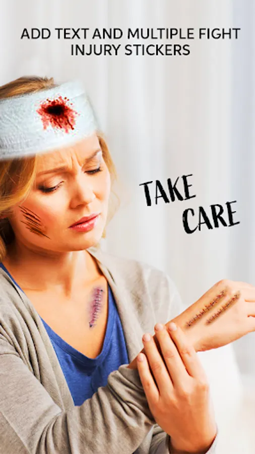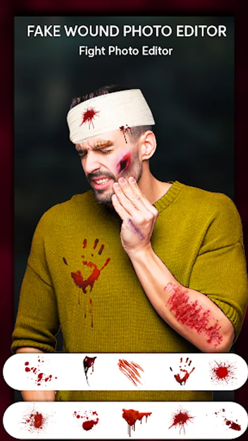 Fake Wound Photo Editor is to set fight sticker on your body photos and make your looks scary. Fight Battle Photo Editor Prank is a 🤕injury photo editor app that offers you a variety of the fight image stickers, face color effects, add text to photos to give a virtual makeover for your face in a seconds.